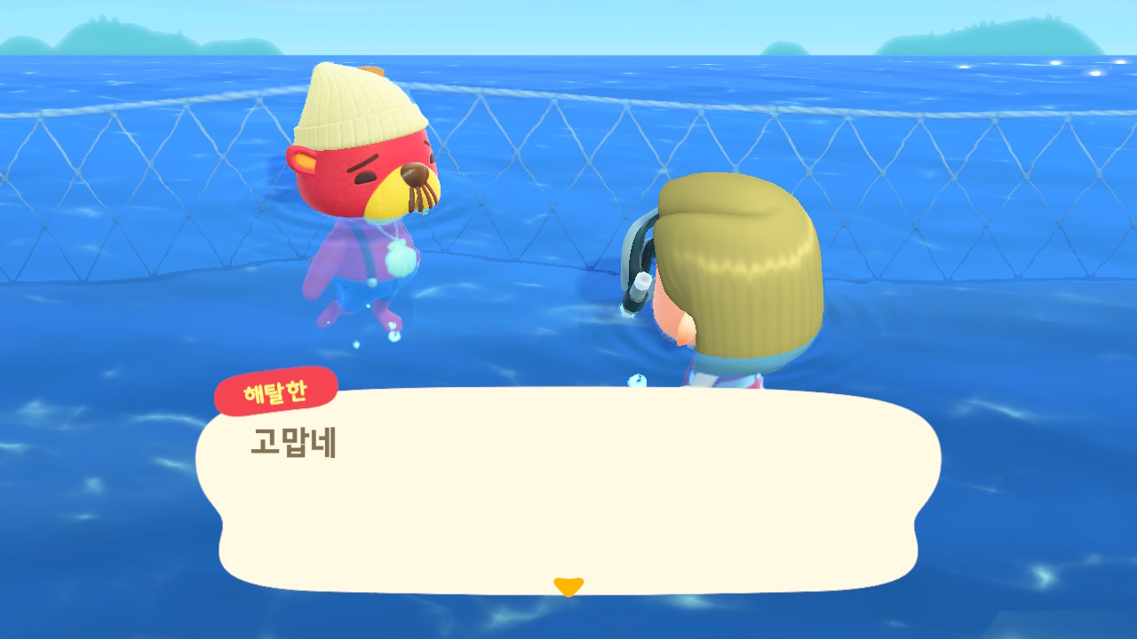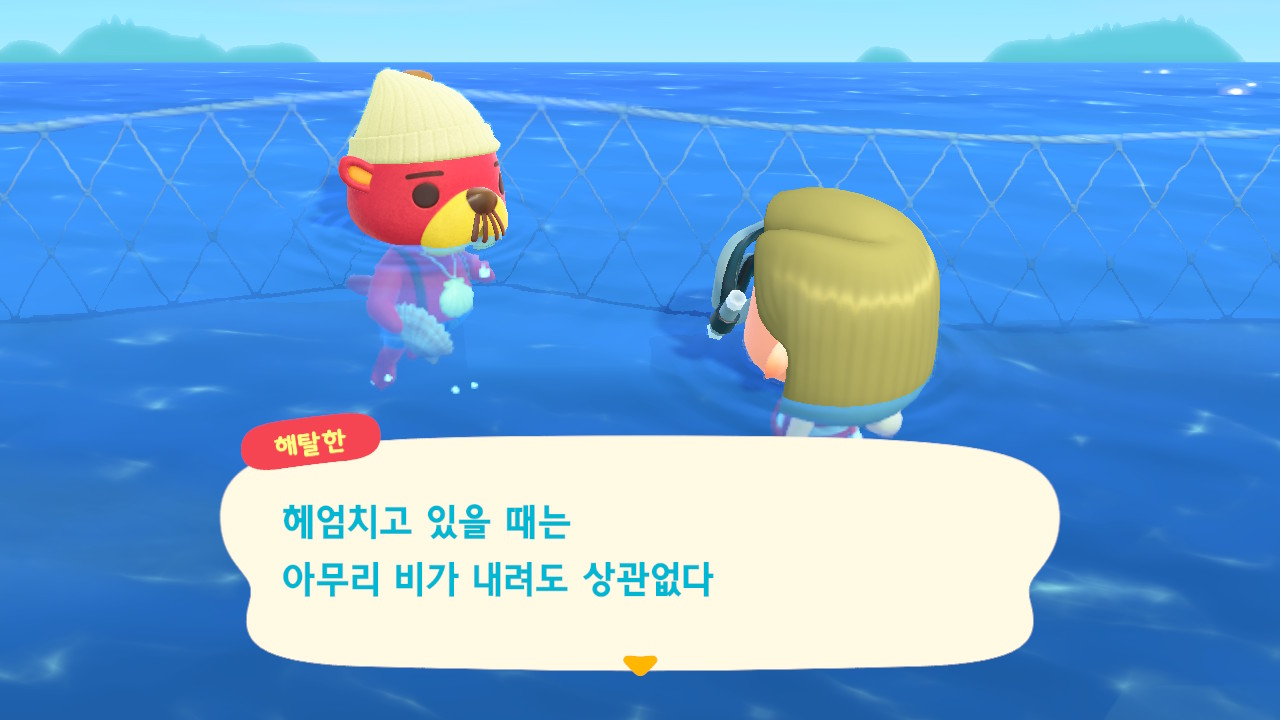 모여봐요 동물의숲이 업데이트를 하여 수영을 할 수 있게 되었습니다!