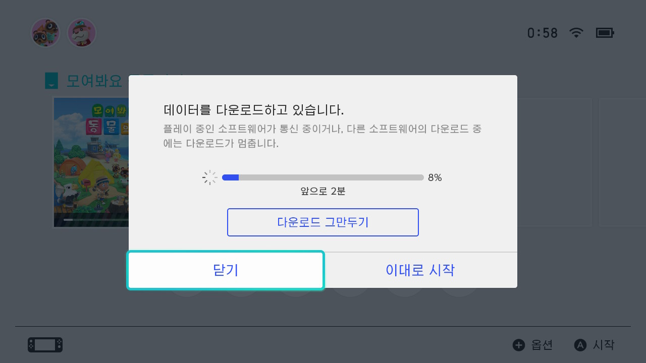 모동숲 업데이트는 닌텐도 홈 화면에서 + 누르고,