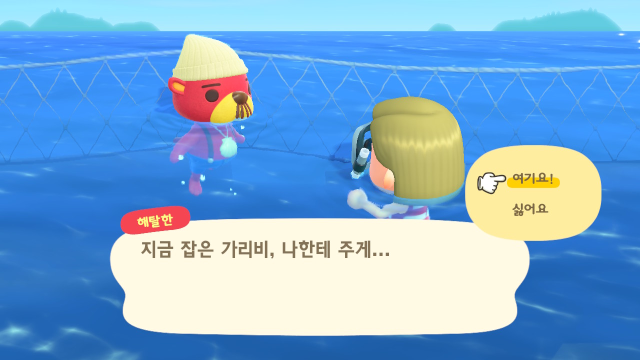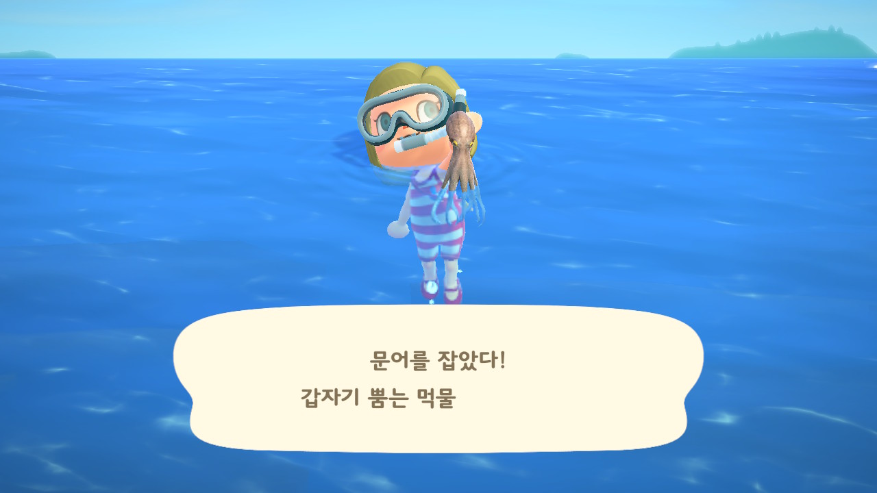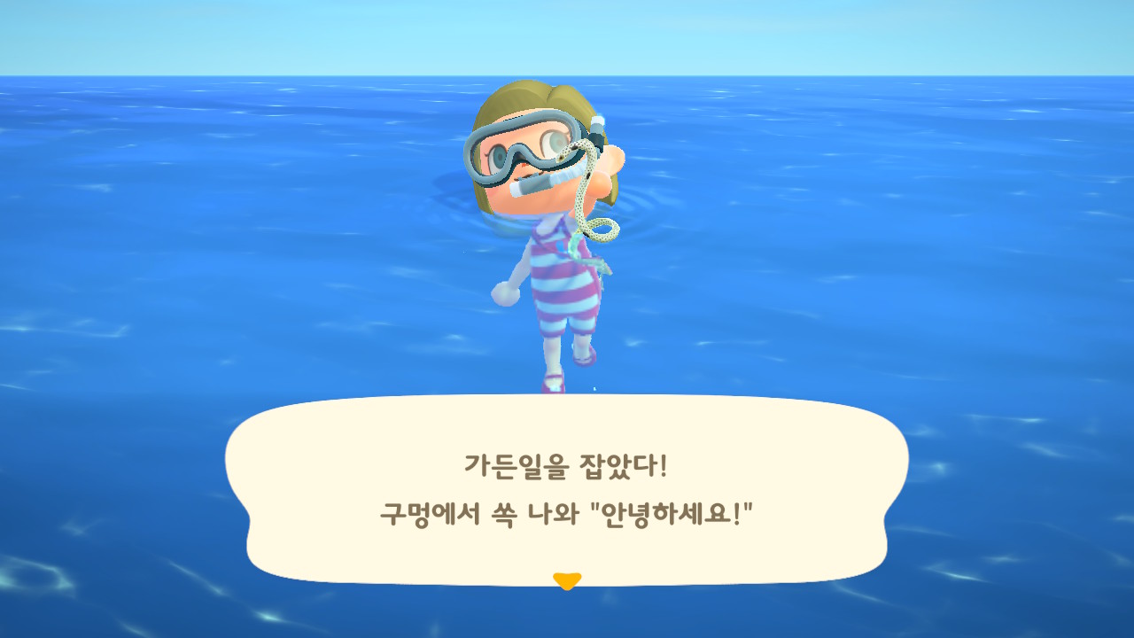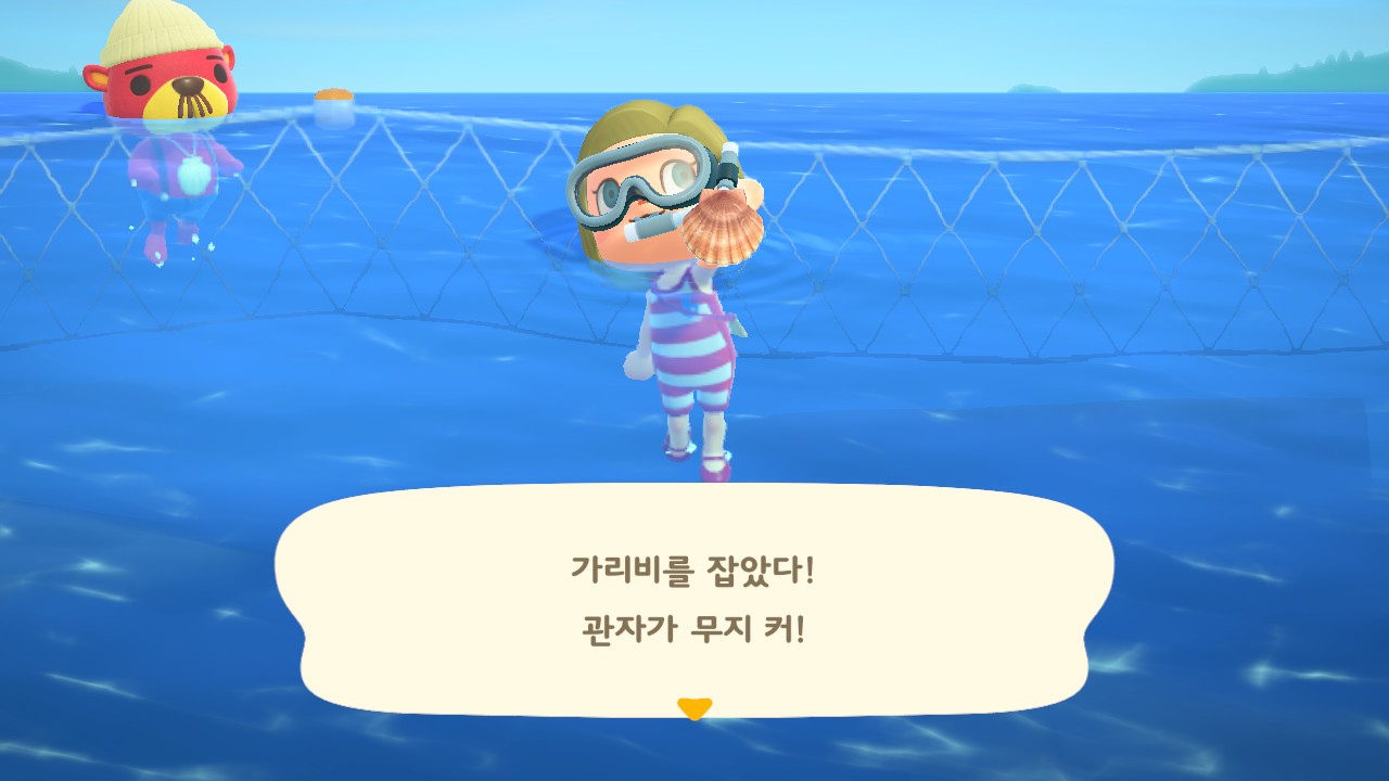 물론 잠수복을 착용해야 하고요. 잠수복은 너굴상점에 가서 찬장 열면 팔고 있습니다.
